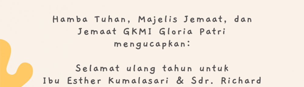 Hamba Tuhan, Majelis Jemaat, dan Jemaat GKMI Gloria Patri mengucapkan Selamat ulang tahun untuk:
