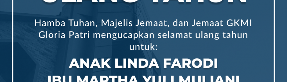Hamba Tuhan, Majelis Jemaat, dan Jemaat GKMI Gloria Patri mengucapkan Selamat ulang tahun untuk: